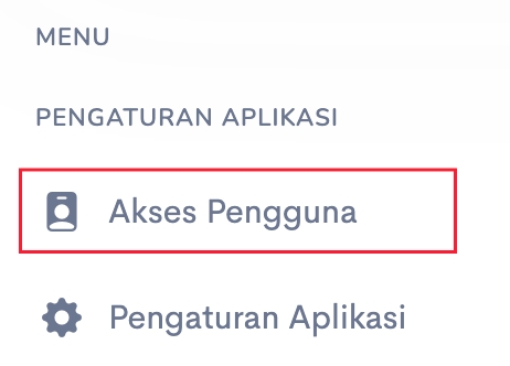 Klik pada menu Akses Pengguna pada group menu Pengaturan Aplikasi