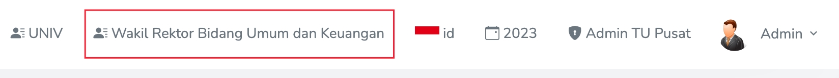 Pengguna yang baru saja diberikan role dan hirarki dapat menggunakannya atau berpindah role/kewenangan dengan cara memilih opsi role atau hirarki pada bagian menu atas (top menu)