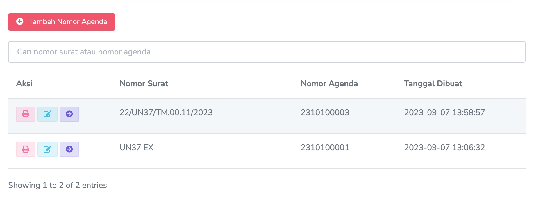 Tambah Nomor Agenda