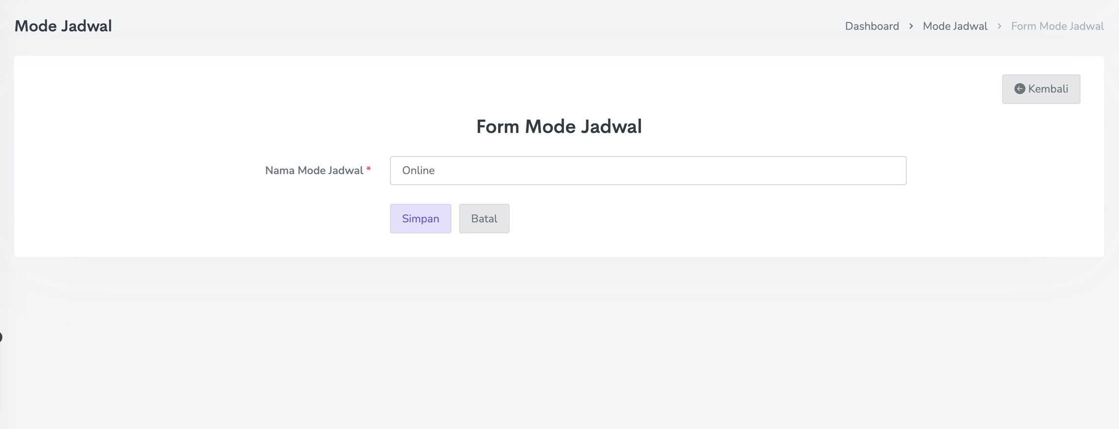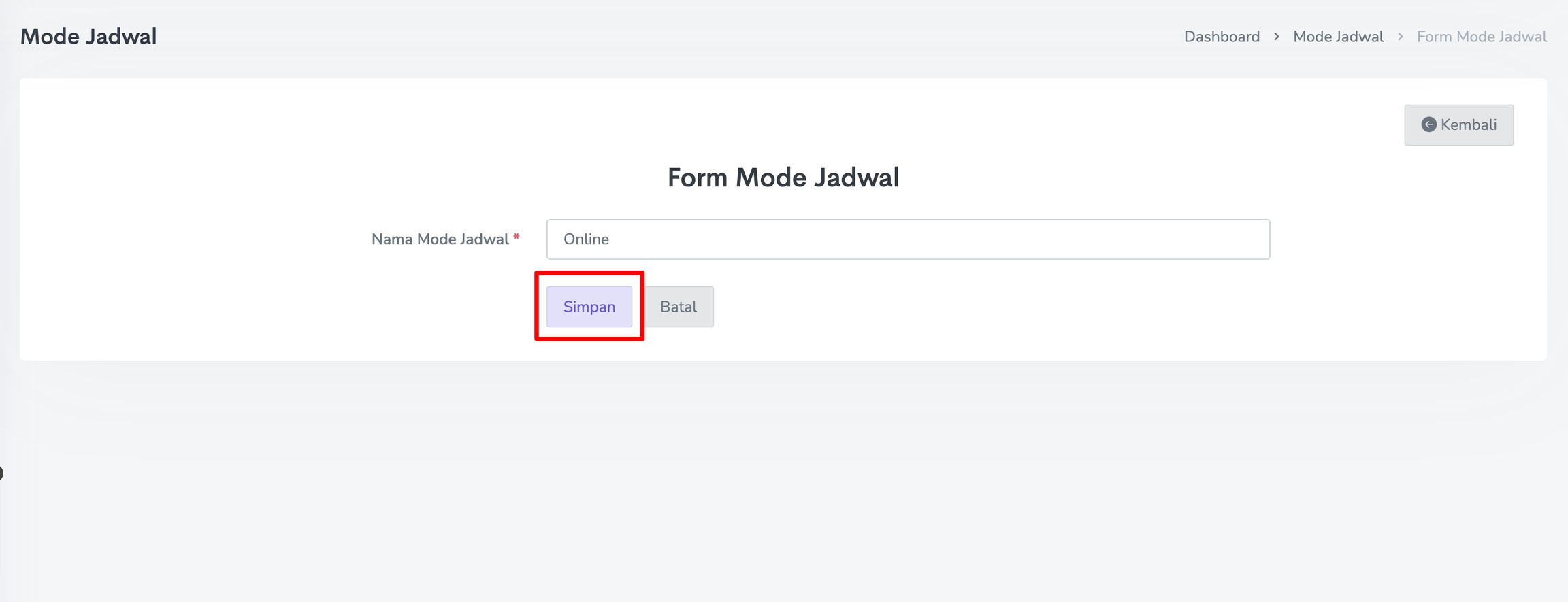 Untuk menambahkan Mode Jadwal, klik tombol Tambah Mode Jadwal pada menu Mode Jadwal.