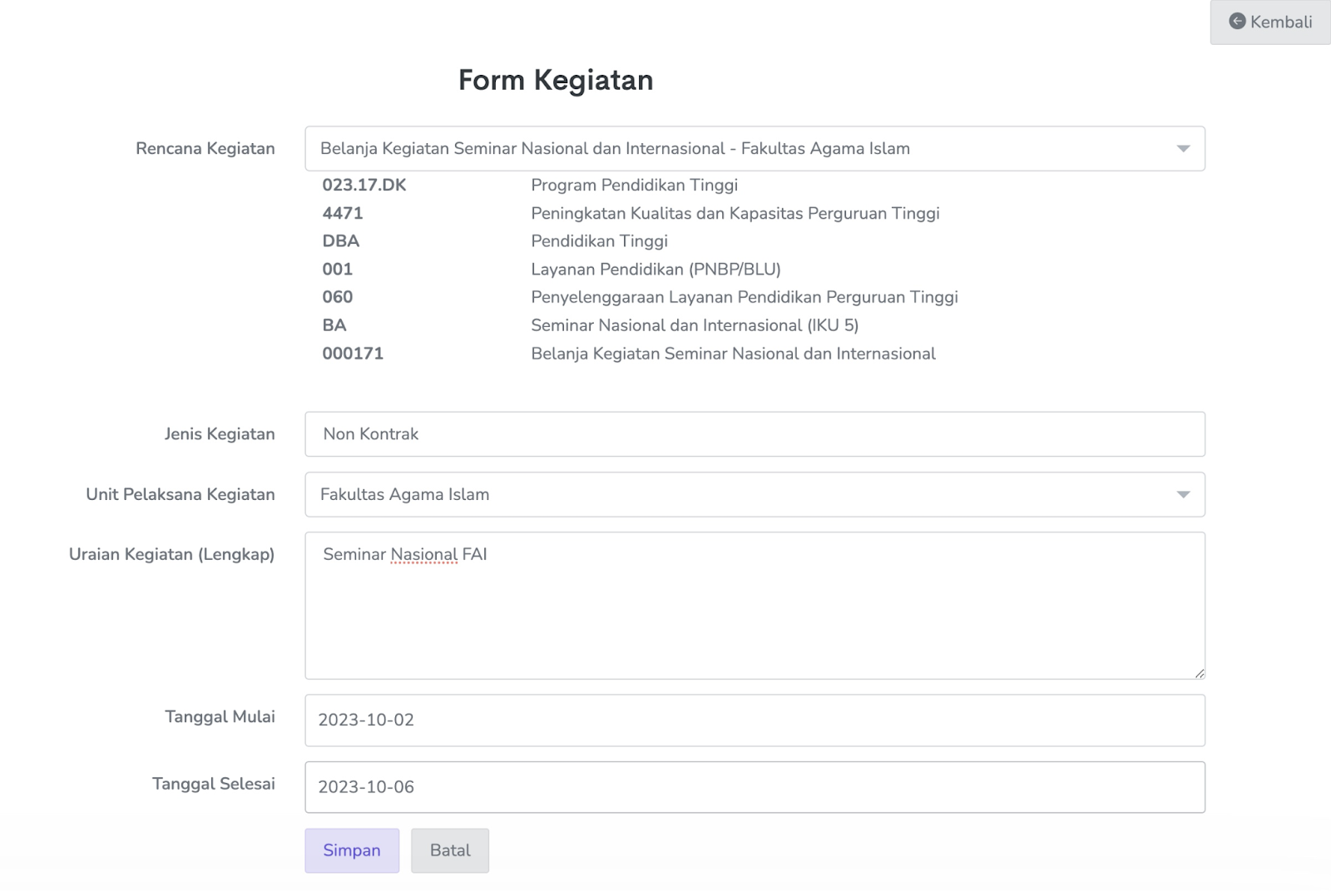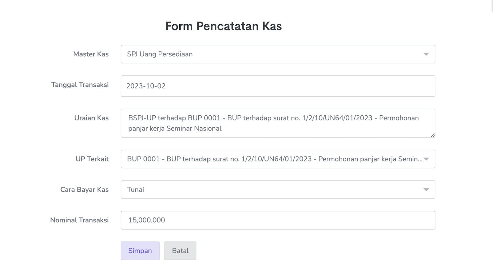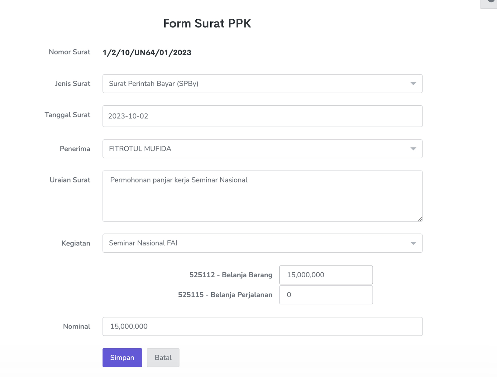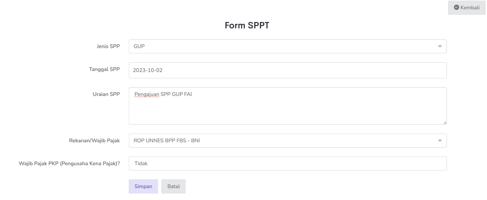 1. Lengkapi data isian dan klik Simpan.