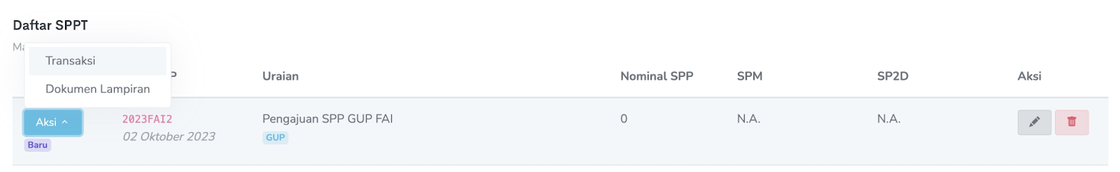 2. Jika SPPT telah berhasil dibuat, daftar SPPT akan muncul seperti gambar di bawah ini :