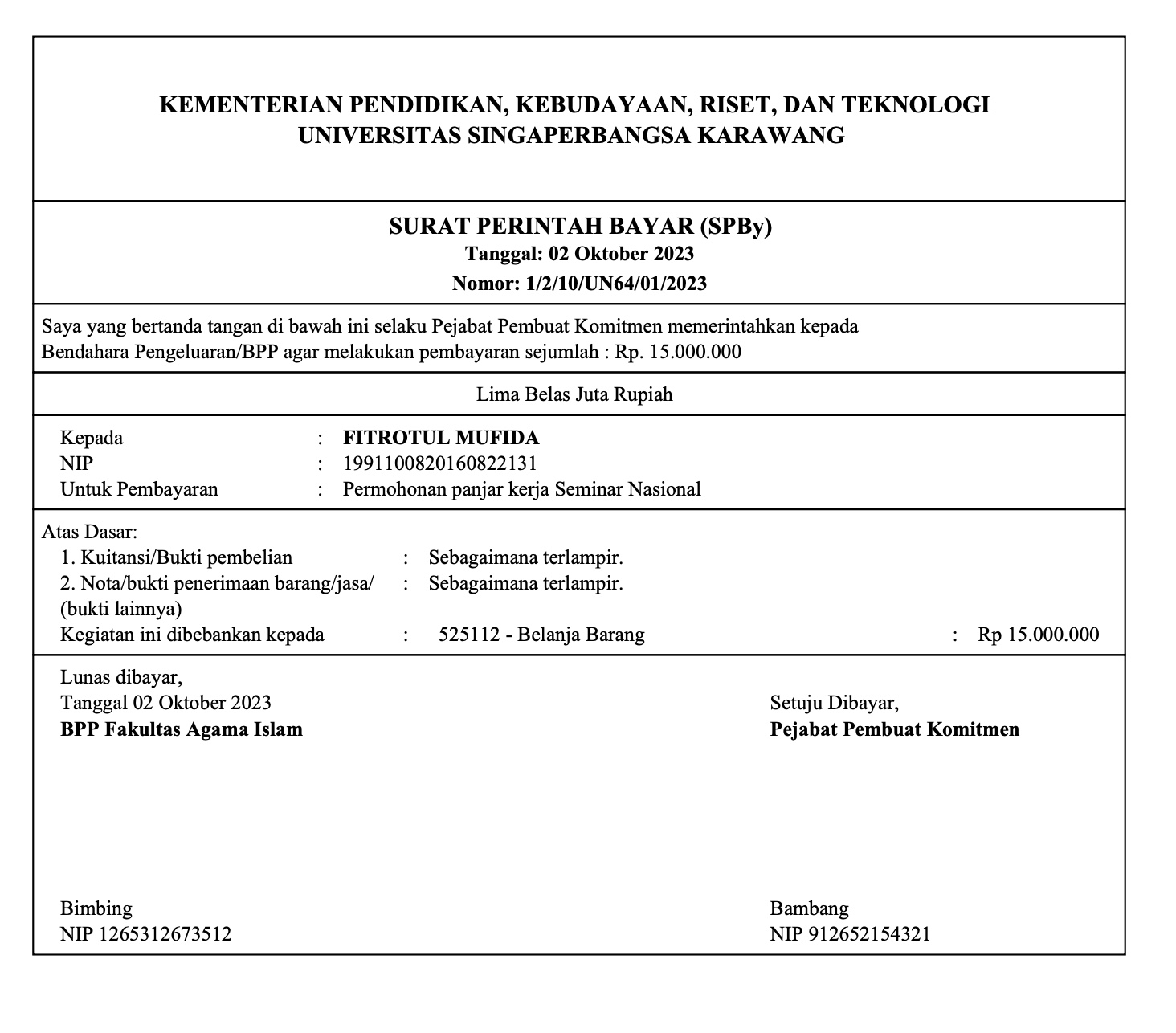 1. Setelah klik Simpan SPBy dapat dicetak dan ditanda tangan dan bisa diarsipkan.