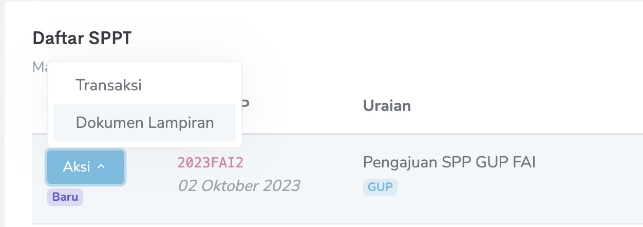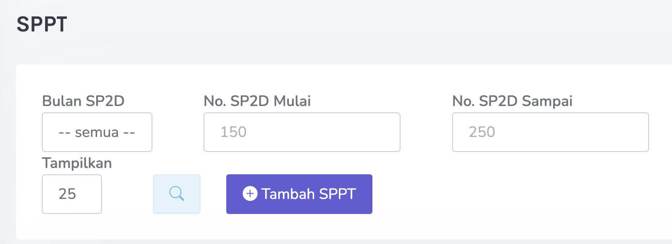 1. Akan muncul tombol Tambah SPPT pada sisi kanan layar. Klik tombol tersebut