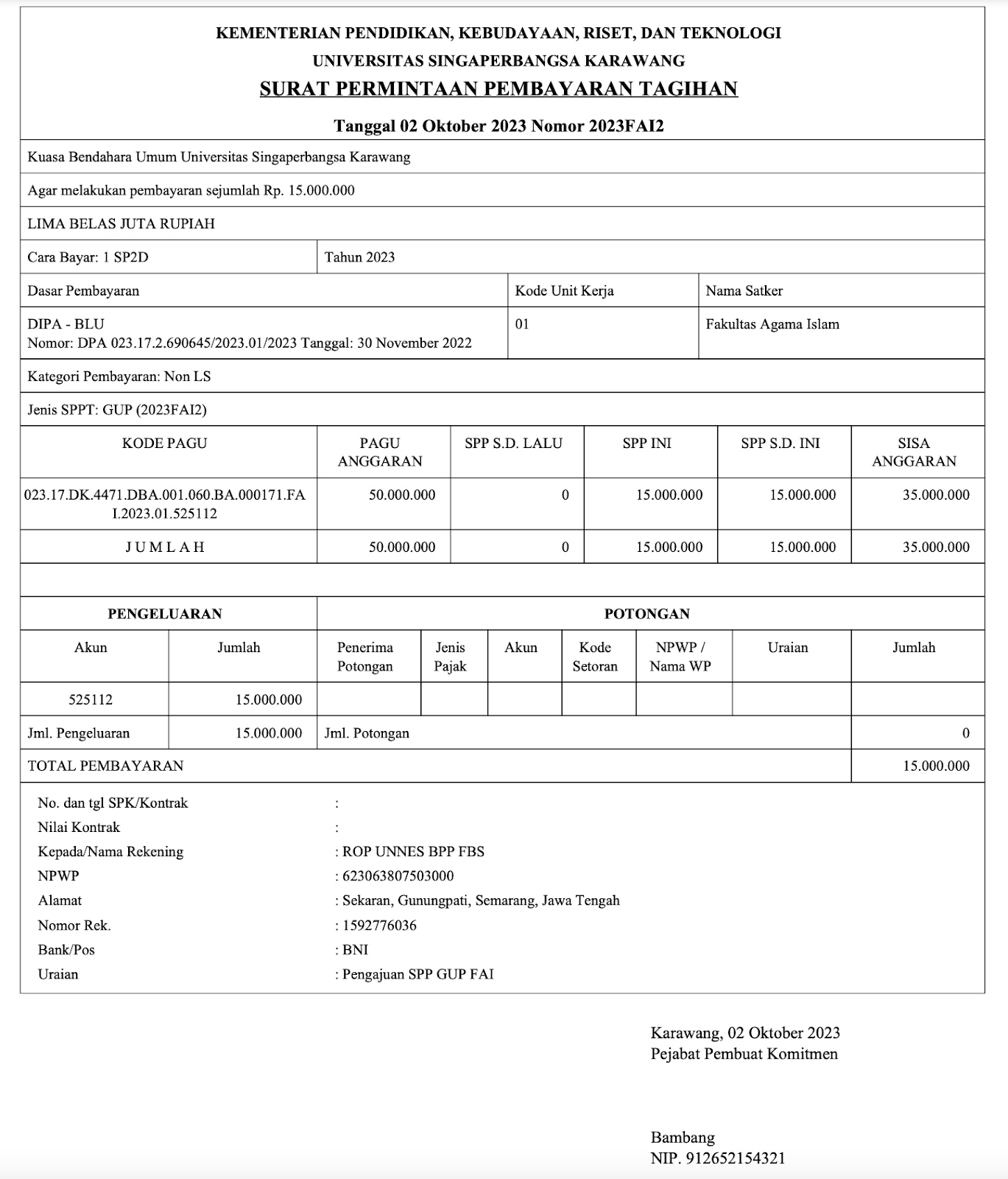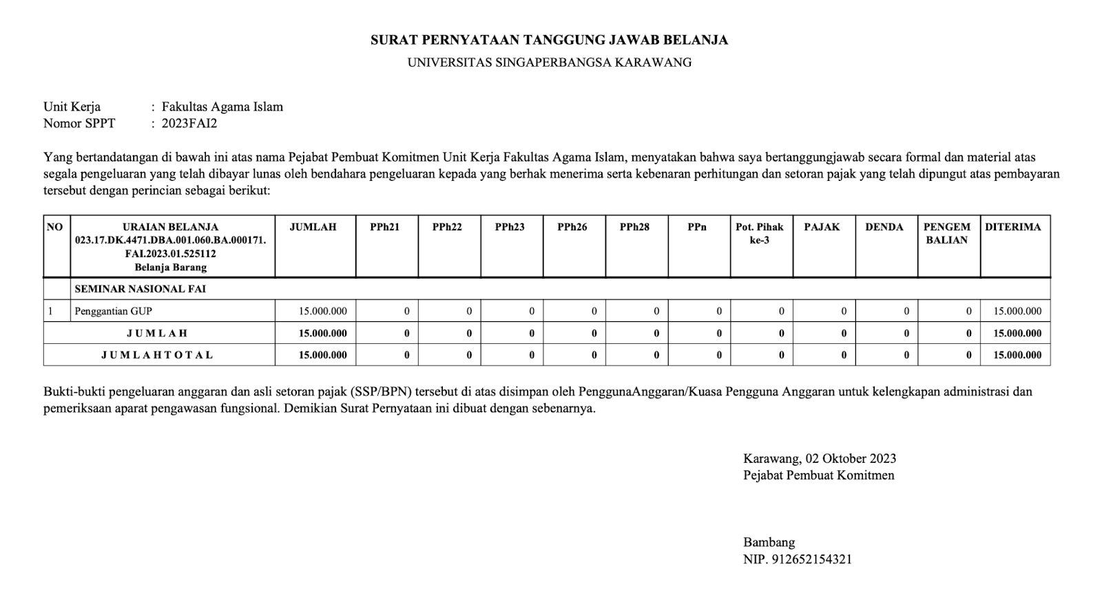 Pembuatan SPP GUP (Ganti Uang Persediaan)