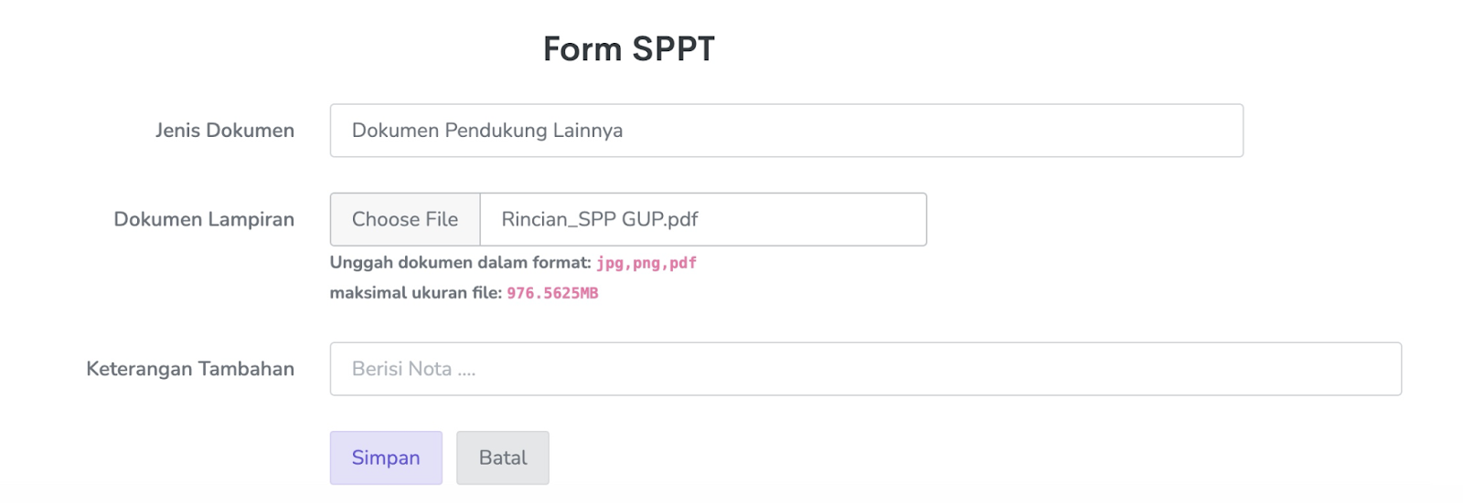 1. Isikan data untuk Form lampiran, dan sertakan dokumen cetakan tadi.