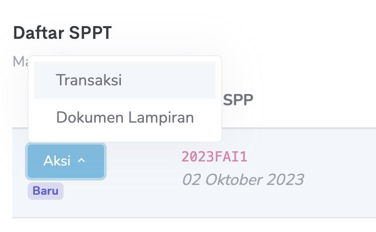 1. Jika sudah mengisi menu transaksi langkah selanjutnya adalah pembuatan SPP UP. Pembuatan SPP UP ada di Menu Transaksi → Keuangan → SPPT → Tambah SPPT. Tampilan menu seperti di bawah ini